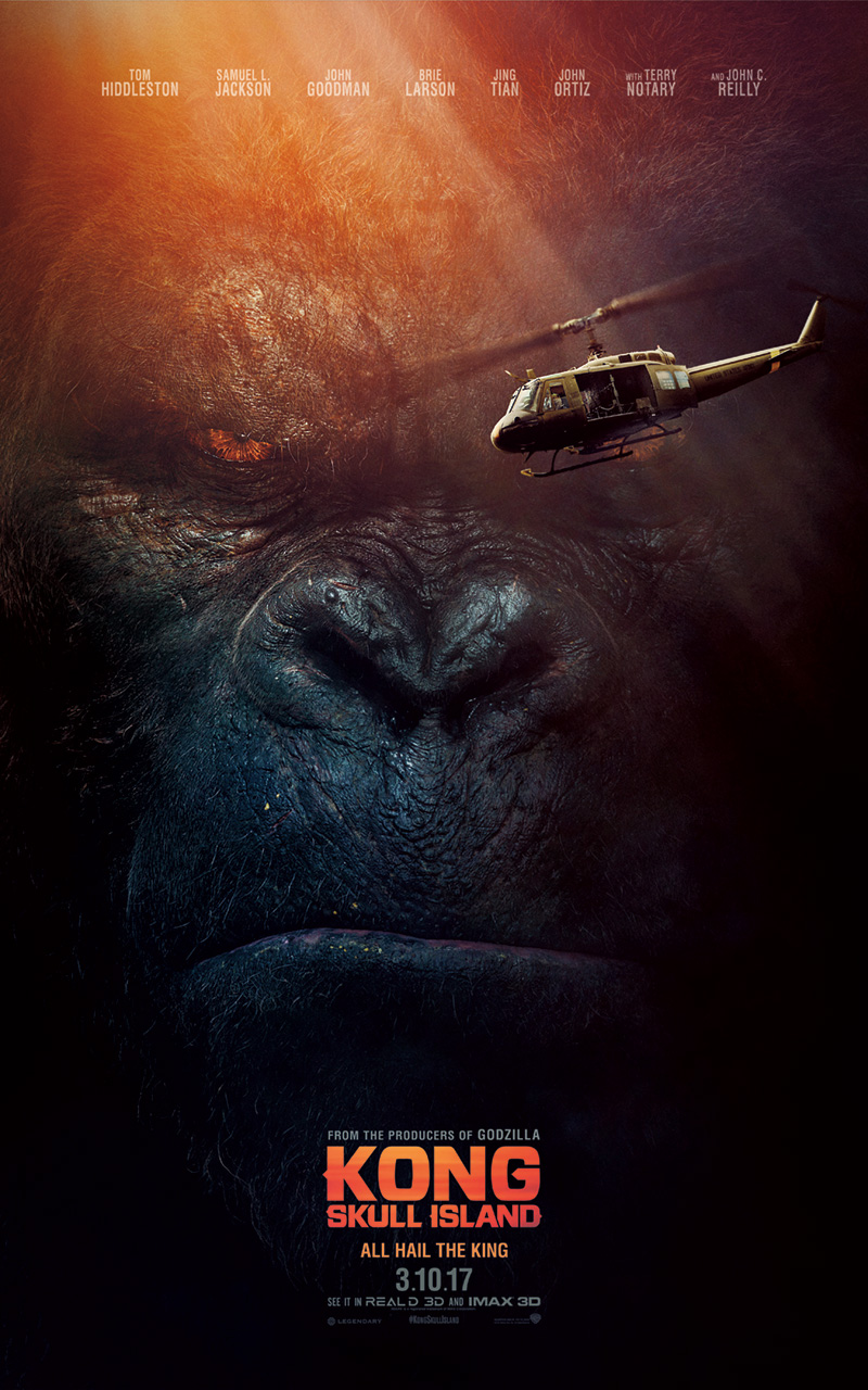 Kong: Skull Island is coming from Legendary and Warner Bros. in March 2017 and starring Hiddleston, Larson, Samuel L. Jackson, John Goodman, and John C. Reilly in a thrilling new adventure that reveals the untold story of how Kong became King.